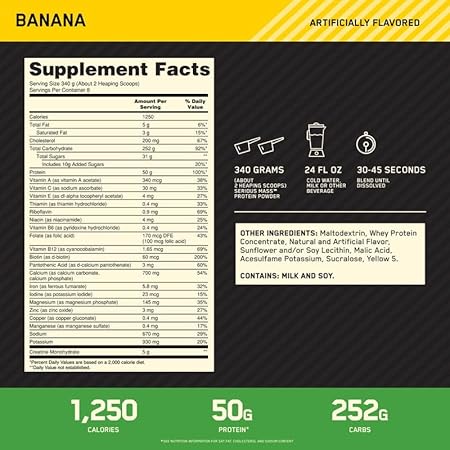 ON Optimum Nutrition Serious Mass Muz Aromalı 2.73kg 8 Servis