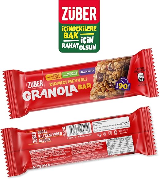 Züber Granola Bar Kırmızı Meyveli, 25Gr, 15 Adet