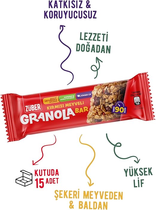 Züber Granola Bar Kırmızı Meyveli, 25Gr, 15 Adet